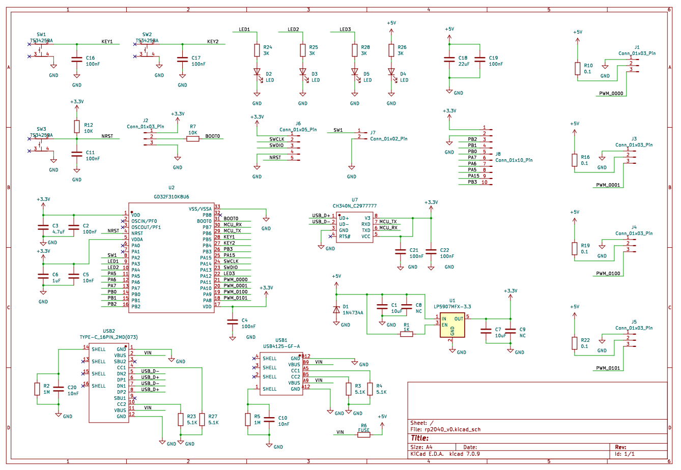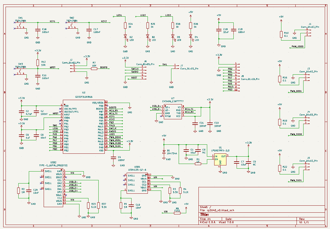 - 低成本:选择GD32F310K8U6(约4.9元)和CH340N(约3.4元)等性价比高的元器件,确保芯片成本控制在10元以内,使项目具有广泛的推广价值。