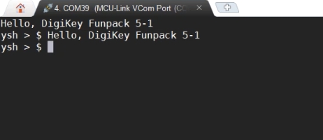 基础功能演示,串口打印“Hello, DigiKey Funpack 5-1”。