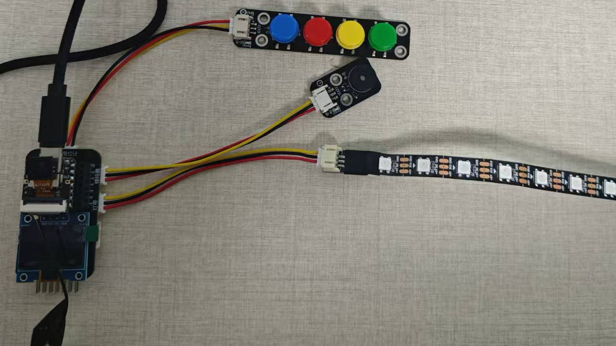 我们本次选择的任务是智能语音氛围灯带,本次主要的使用模块为rgb灯带、OLED、蜂鸣器模块以及ESP32‑S3 Sense开发板,我们将通过这些模块实现一个智能语音氛围灯带。本次的主要任务是设计三种氛围灯显示模式,然后通过AI模型进行麦克风语音的识别,我们本次需要至少实现三条语音指令,然后在OLED上显示相关信息,并在相关指令切换的时候通过蜂鸣器短鸣进行提示。