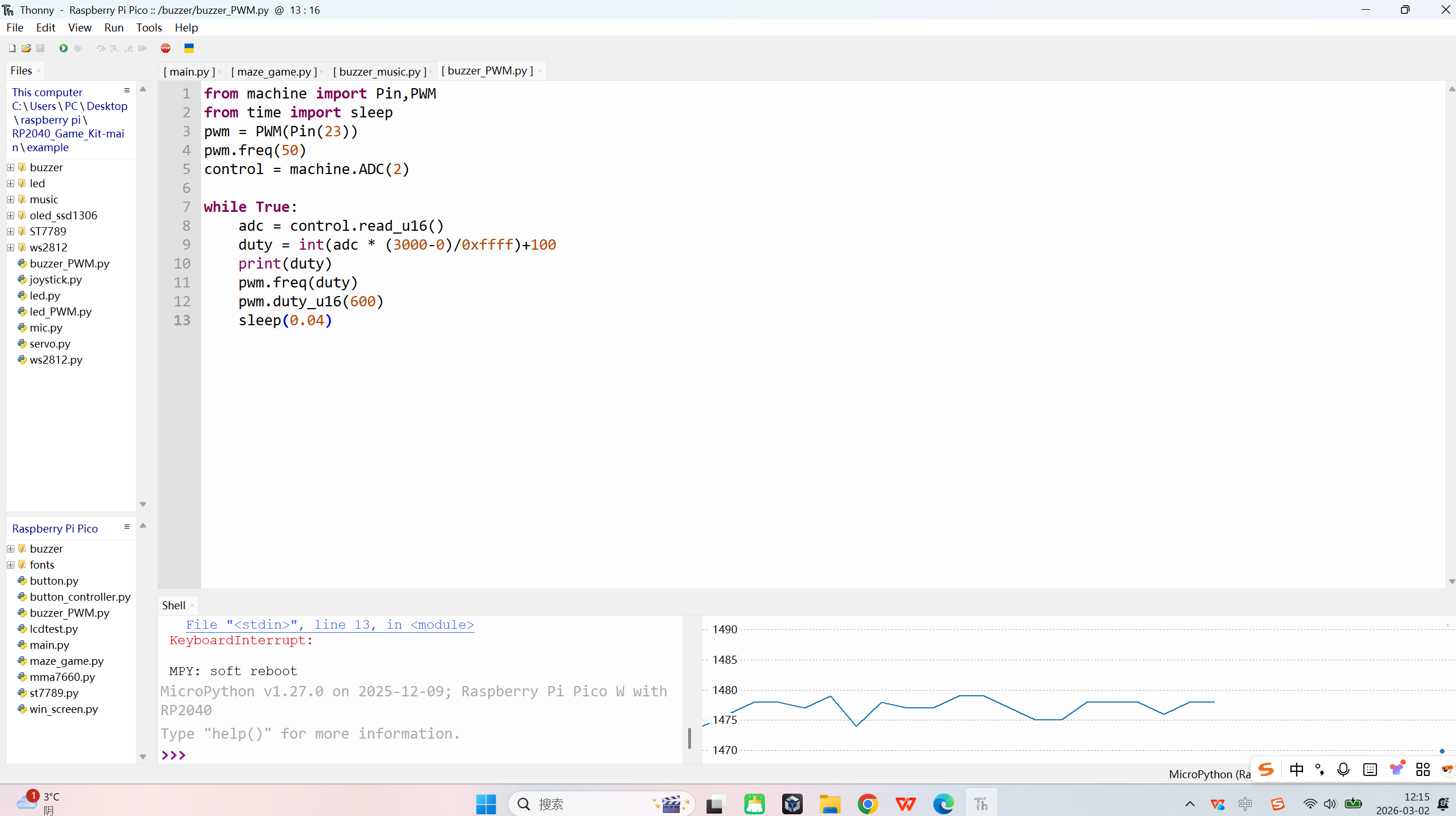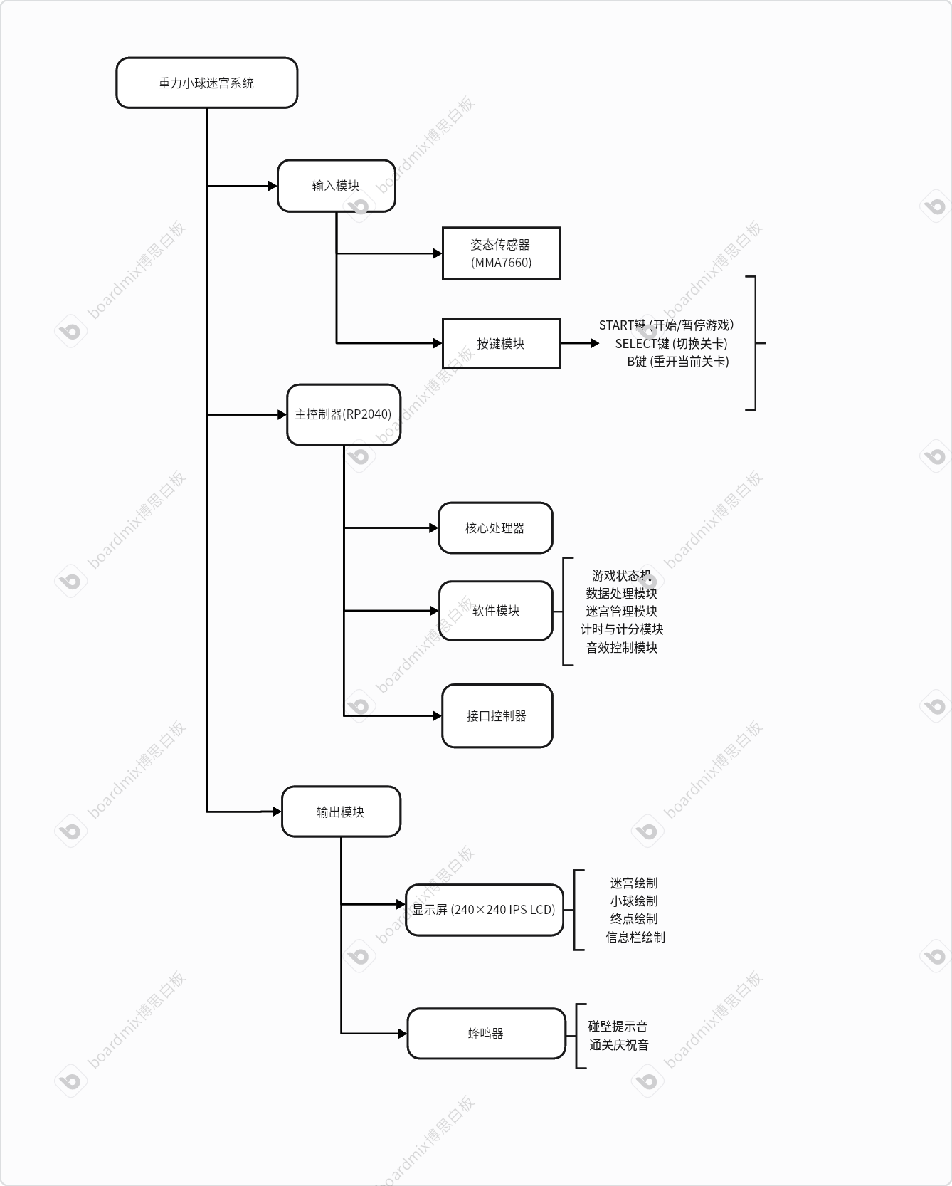 本项目基于RP2040微控制器和MicroPython语言,成功实现了一个完整的重力感应迷宫游戏,通过MMA7660姿态传感器将物理倾斜转换为虚拟小球的移动控制,在240×240 IPS显示屏上实时渲染三层递进式迷宫,并集成碰撞检测、计时计分、音效反馈和按键控制功能。