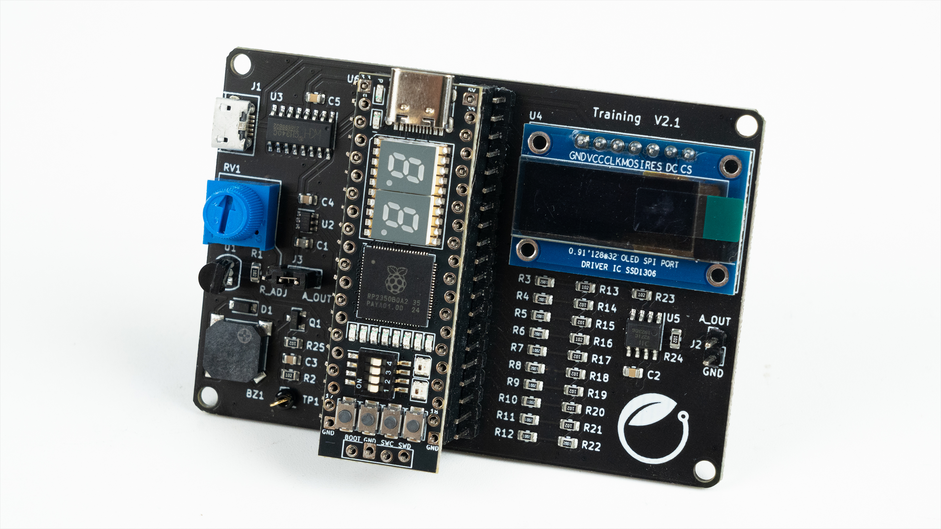 本系统基于功能强大的RP2350B微控制器设计。RP2350B作为RP2040的升级版,拥有更多的GPIO引脚和更强的处理能力,为外设扩展提供了极大便利。本项目的硬件组成主要围绕一块集成了多种外设的扩展底板构建,具体包括: