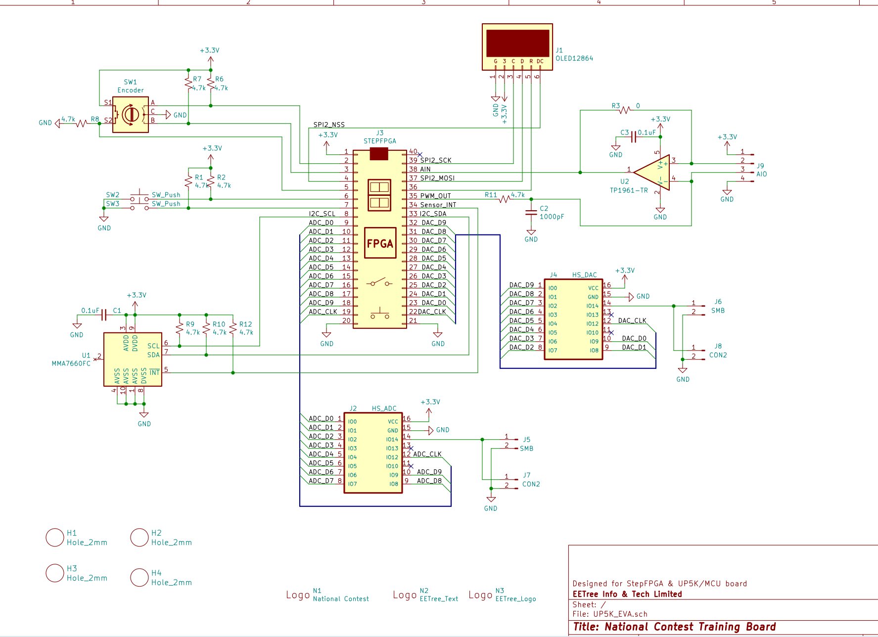 本项目选择的任务为“基于高速 ADC 的数字频率计与幅度测量仪”。任务要求利用电赛板上的 ADC 模块,由 FPGA 产生稳定的采样时钟 ADC_CLK,对外部输入的正弦波或方波进行采样,并在 100 Hz~1 MHz 范围内完成频率测量;同时计算信号的幅值参数,对方波进一步测量占空比,并通过七段数码管、OLED 和 LED 等多种方式显示结果。该任务覆盖了模拟前端理解、ADC 采样、FPGA 时序设计、测量算法实现以及显示驱动等多个层面,具有较强的综合性和工程实践价值。
