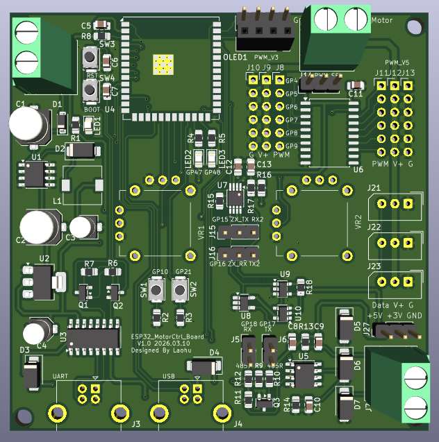 本项目基于ESP32-S3模组,设计了一款舵机控制板,命名为ESP32-S3-MotorCtrlBoard。