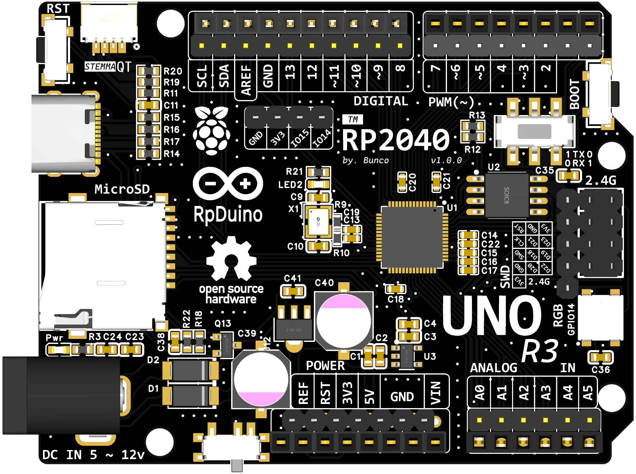 本开发板通过保留 Arduino Uno 的易用性和发挥 RP2040 的性能优势,为开发者提供了一个 “高性能、高兼容、高扩展性” 的硬件平台。无论是 Arduino 用户向专业领域进阶,还是嵌入式开发者快速原型验证,均可通过此板实现高效开发。