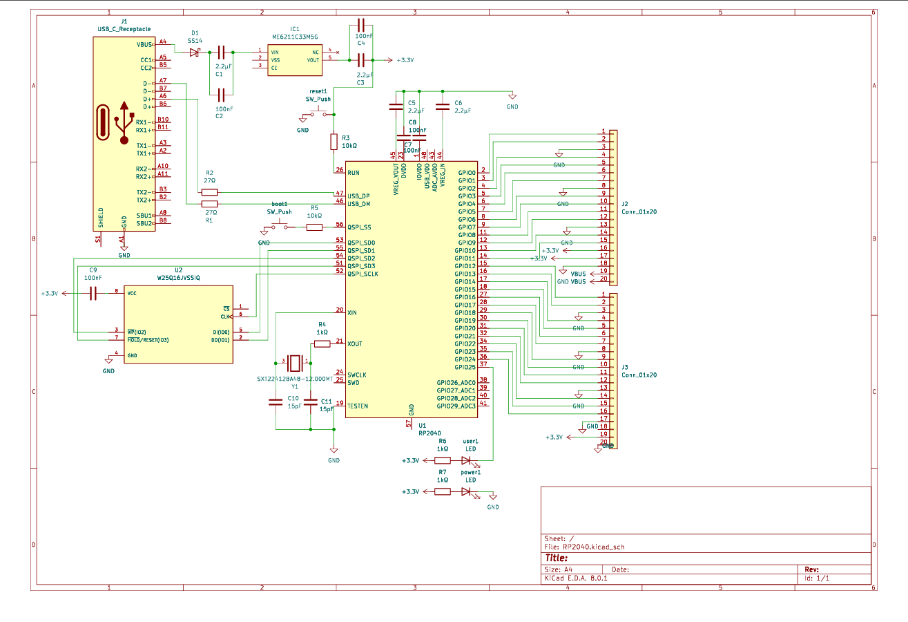 基于RP2040设计一款功能完整的开发模块,设计要求包括: