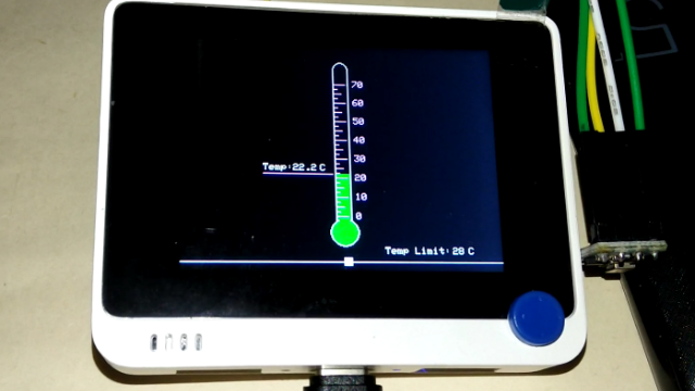 - 通过控制逻辑当温度值超过温度控制上限值,改变温度计颜色,通过模拟写的方式控制蜂鸣器发声。