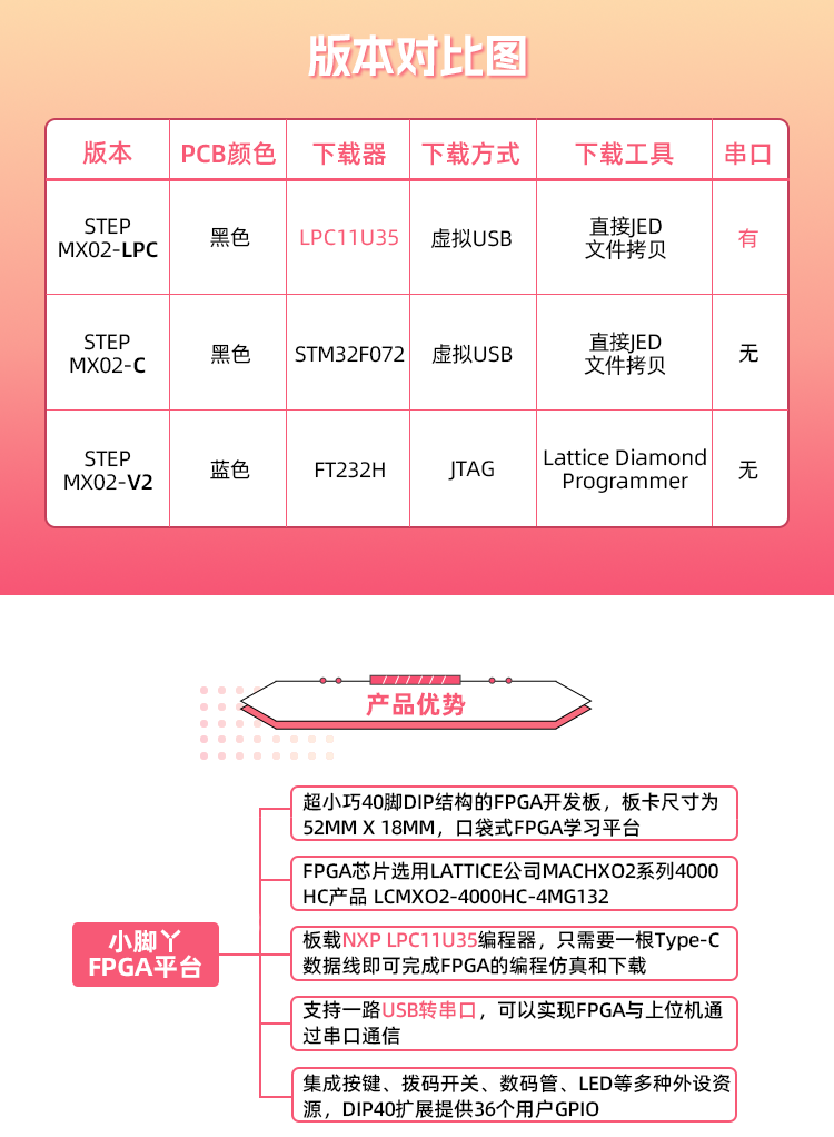 本产品支持搭任意版本小脚丫核心板,2026年寒假练活动统一使用Altera MAX10系列10M02SCM芯片的核心板。