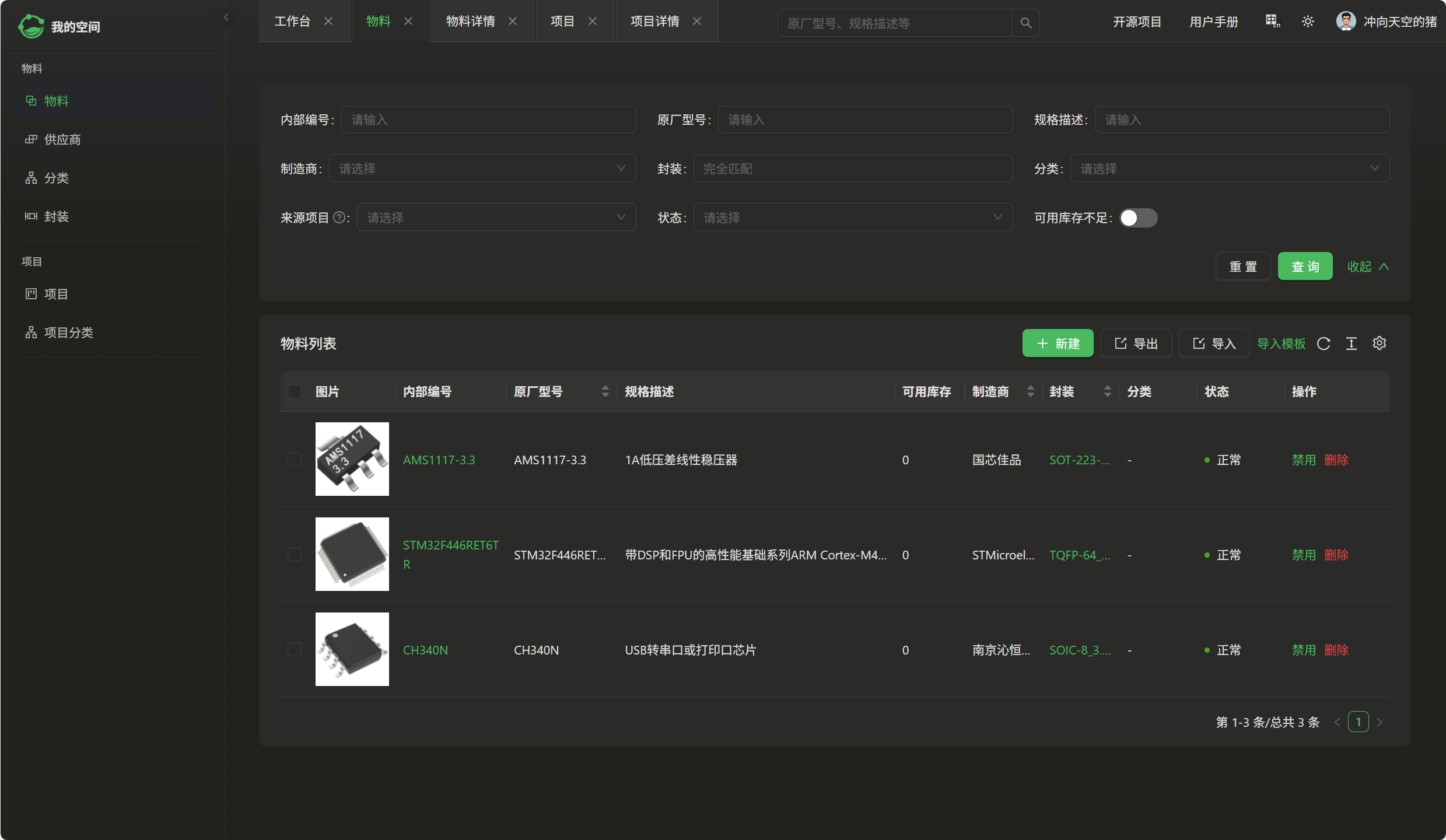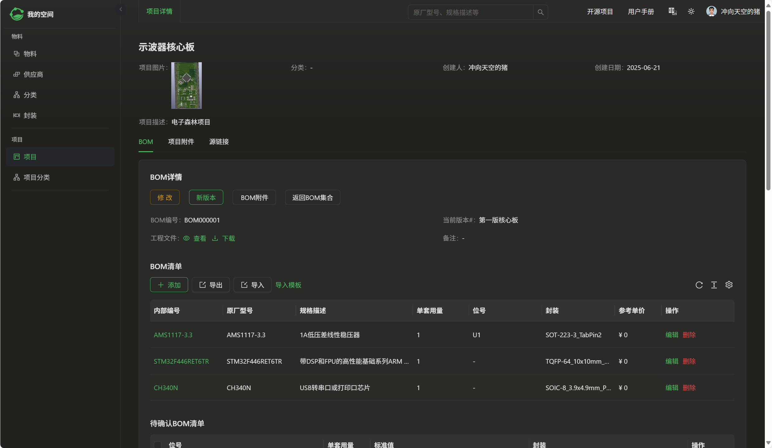 使用了eZ-PLM系统上传了自己的工程文件,方便保存记录各个版本,也可随时查阅,系统里查阅不到的物料也支持手动添加。