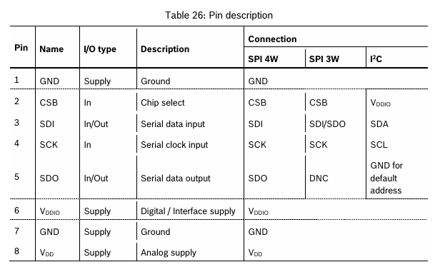 - I2C地址选择: SDO引脚在I2C模式下作为地址选择位。将其接地可以选择默认的I2C地址。