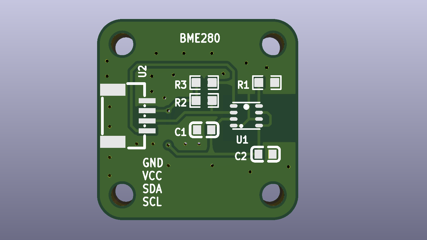 - 电源部分: 外部通过接口传入3.3V电源和GND。C1和C2两个滤波电容并联在BME688的VDD和VDDIO引脚附近,用于滤除电源噪声,为传感器提供纯净的电源。