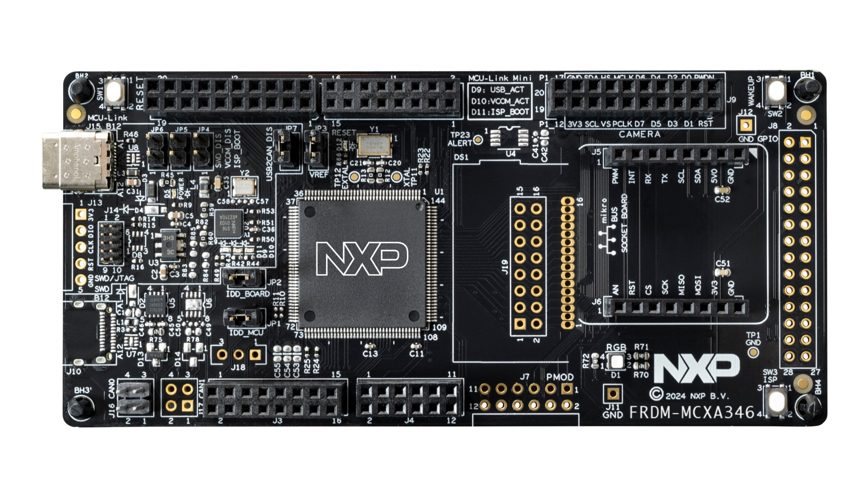 FRDM-MCXA346 是一款紧凑且可扩展的开发板,可让你快速基于FRDM-MCXA346微控制器单元(MCU)开展原型设计。它们提供行业标准的接口,可轻松访问MCU的I/O,配备集成的开放标准串行接口、外部闪存和板载MCU-Link调试器。通过 MCUXpresso Developer Experience提供其他工具,如面向附加板的扩展板中心和面向软件示例的应用代码中心。