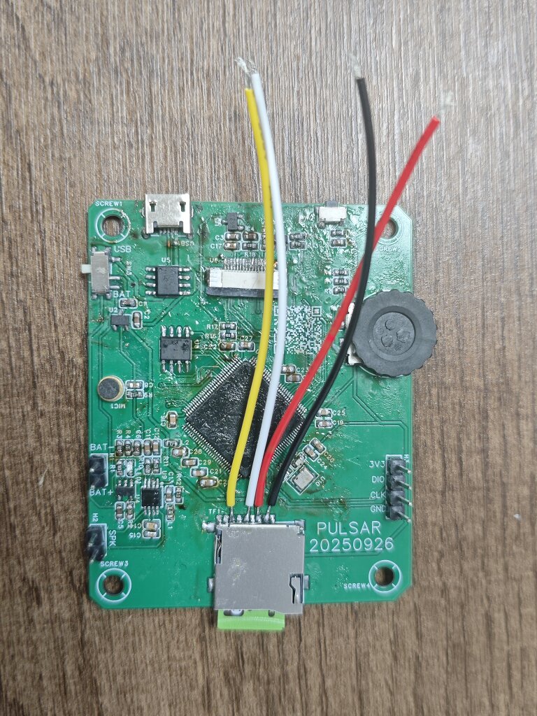 本项目的SD卡调试的时间最久,一是应为官方SDK中没有SDIO的例子,只能自己按照寄存机手册研究,而是按照文档研究了好多天用示波器挨个引脚检测波形才发现SDIO的CLK引脚没有任何输出,即便初始化为普通GPIO也没有输出,最后只能用旁边的IO短接过来,再使用IO模拟SPI来驱动SD卡,好在也是成功驱动了,前后花费了一周左右,除了速度稍慢一些其他都没什么问题。本项目的外扩PSRAM调试可以参考官方SDK中的QPIFLASH例子以及芯片文档,前后花了3天左右成功驱动。以下是调试过程中的两张记录图片,一是刚焊好主控芯片和USB串口用来测试芯片是否焊好,二是调试SD卡时一直有问题就飞了4根线来用示波器或者逻辑分析仪来抓波形。
