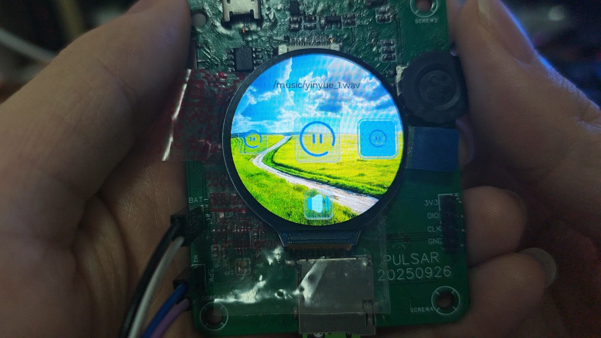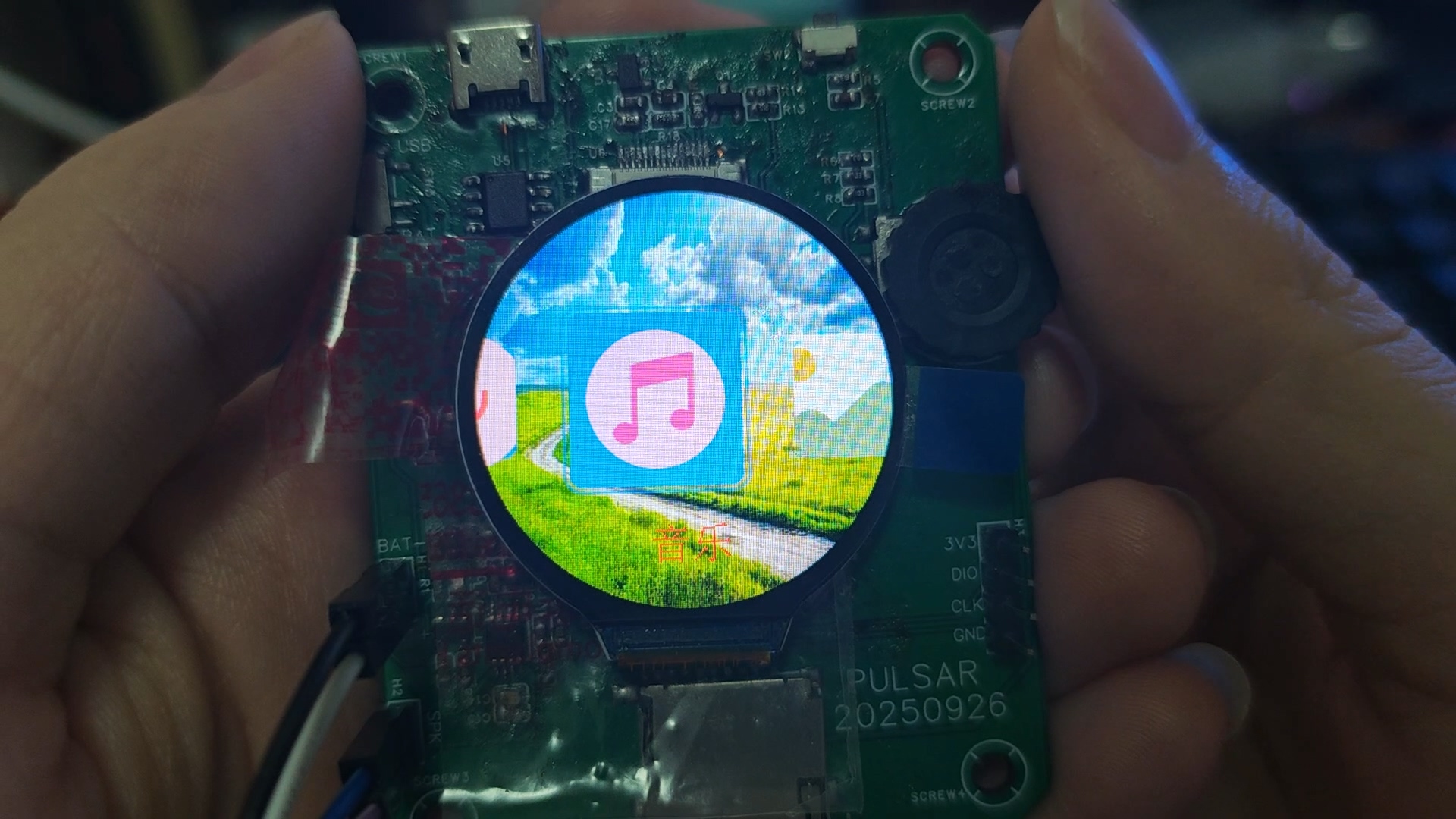 本项目设计了一款以NS800RT5039芯片为主控核心的开发板——脉冲星开发板,板载接口和外设包括:1.28寸15pin圆形彩屏、SDIO SD卡、音频功放IC NS4150B、MIC、8MB PSRAM APS6404L、USB转TTL CH340、电池充电IC ME4054。主要功能包括:通过MIC采集环境音频信号并展示频谱、从SD卡读取音频并播放、查看SD卡中的图片、小说阅读、切换背景、调整屏幕背光亮度等。