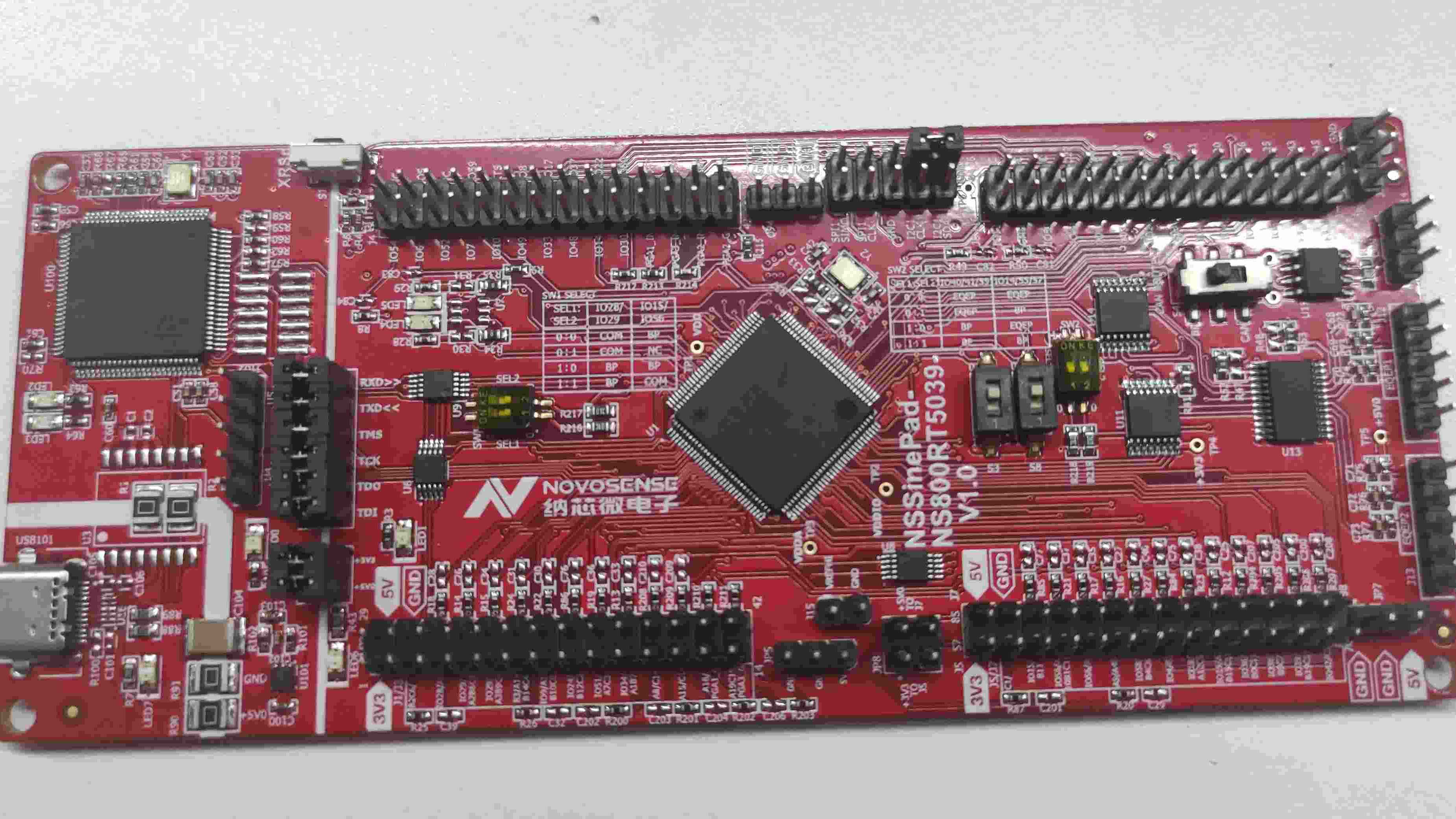 微控制器NS800RT5039为纳芯微电子研发的中端算力实时控制MCU,采用运行在200~260MHz的Cortex M7内核,片上 FLASH(带ECC) 512KB, 片上SRAM 388KB。且片内自带一个自研的eMath浮点数学运算加速核,可以方便且快速的进行各种浮点三角函数运算及FFT、卷积、矩阵运算,本项目就使用eMath实现了IIR滤波器和512点的FFT。