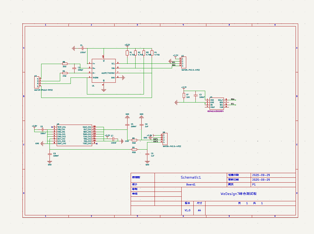 • I²C模块:I²C通道接口(公用),连接温度与压力传感器,支持多从设备寻址与中断响应,通信速率选择100kHz。