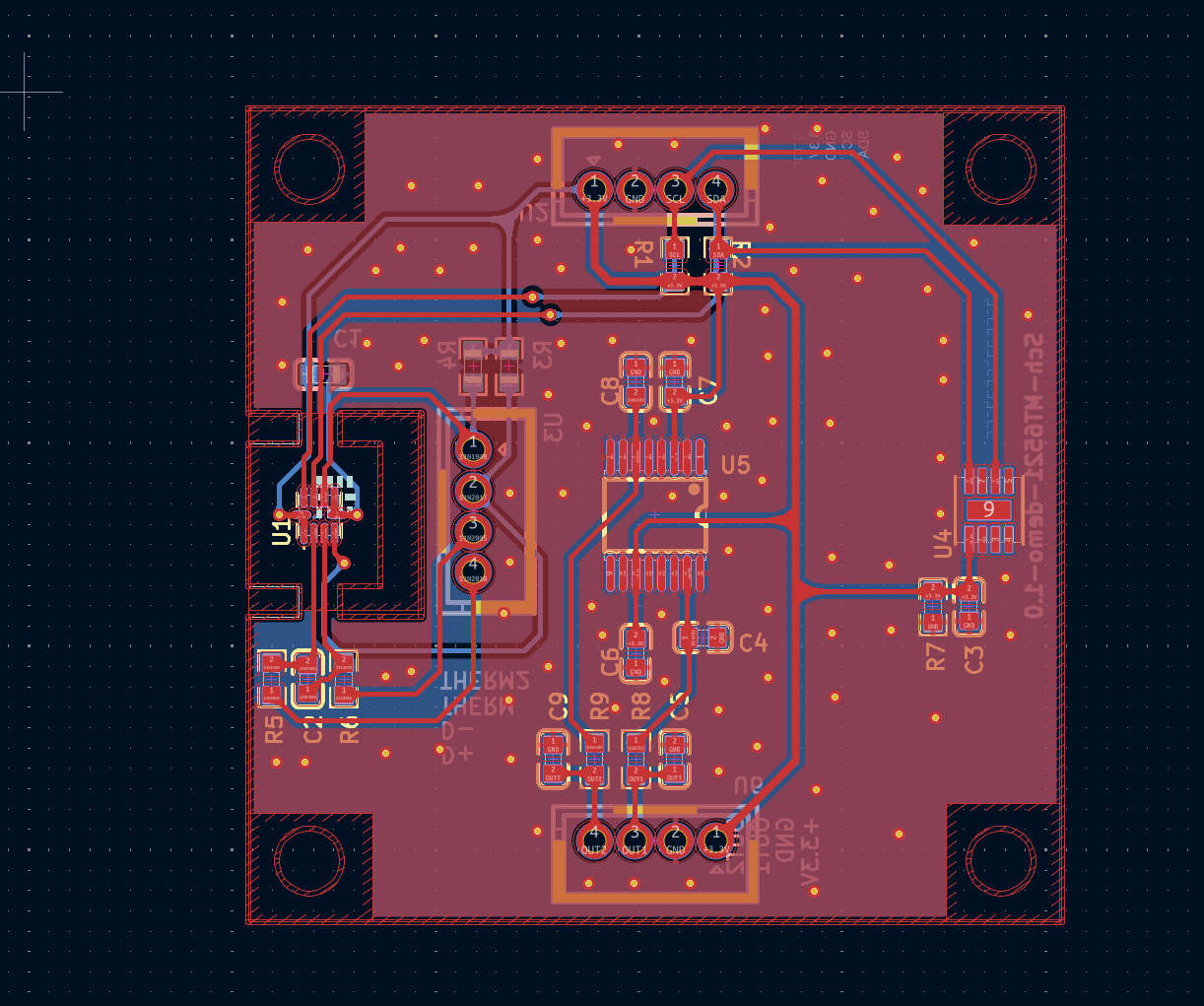 PCB设计图主要考虑的是合理布局和走线优化。主要是接口和传感器的位置分布。还是要注意磁传感器需要5V供电,我们合理时间限制只能通过割线飞线的方式进行,建议重新画一下。