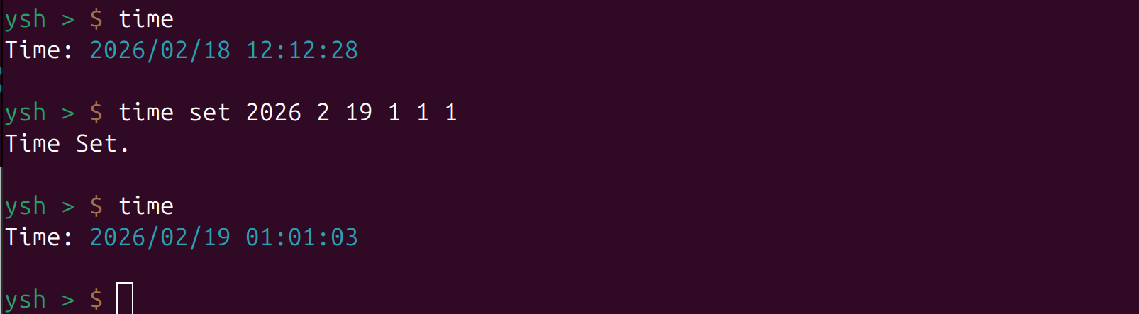 使用命令time查看当前系统时间,使用time [set Y M..]设置时间