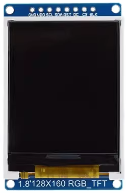 用于显示装置工作信息。本项目中使用的是1.8寸的TFT显示屏,SPI接口,分辨率为120*160,驱动核心是ST7735。