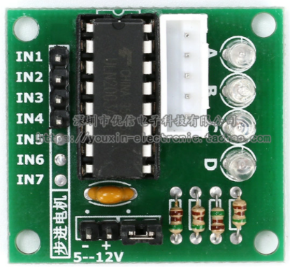 用于驱动步进电机。驱动板使用达林顿驱动集成块ULN2003构成,简单实用,输入端兼容单片机数字接口。可以用于低压、简单电机驱动的应用。