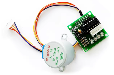 是两相五线步进电机,型号为28BYJ-48,步进角度为1.8度,工作电压5V。
