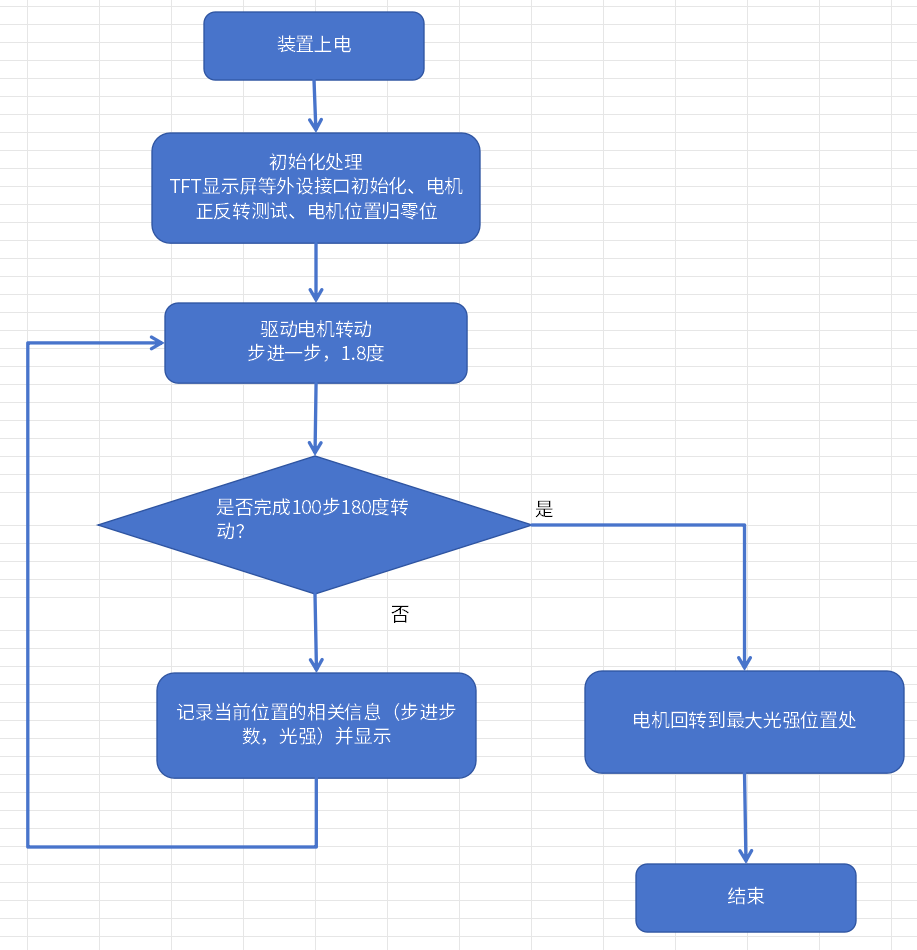 ·驱动电机转动,并在转动过程中获取位置的光强,记录最大值。