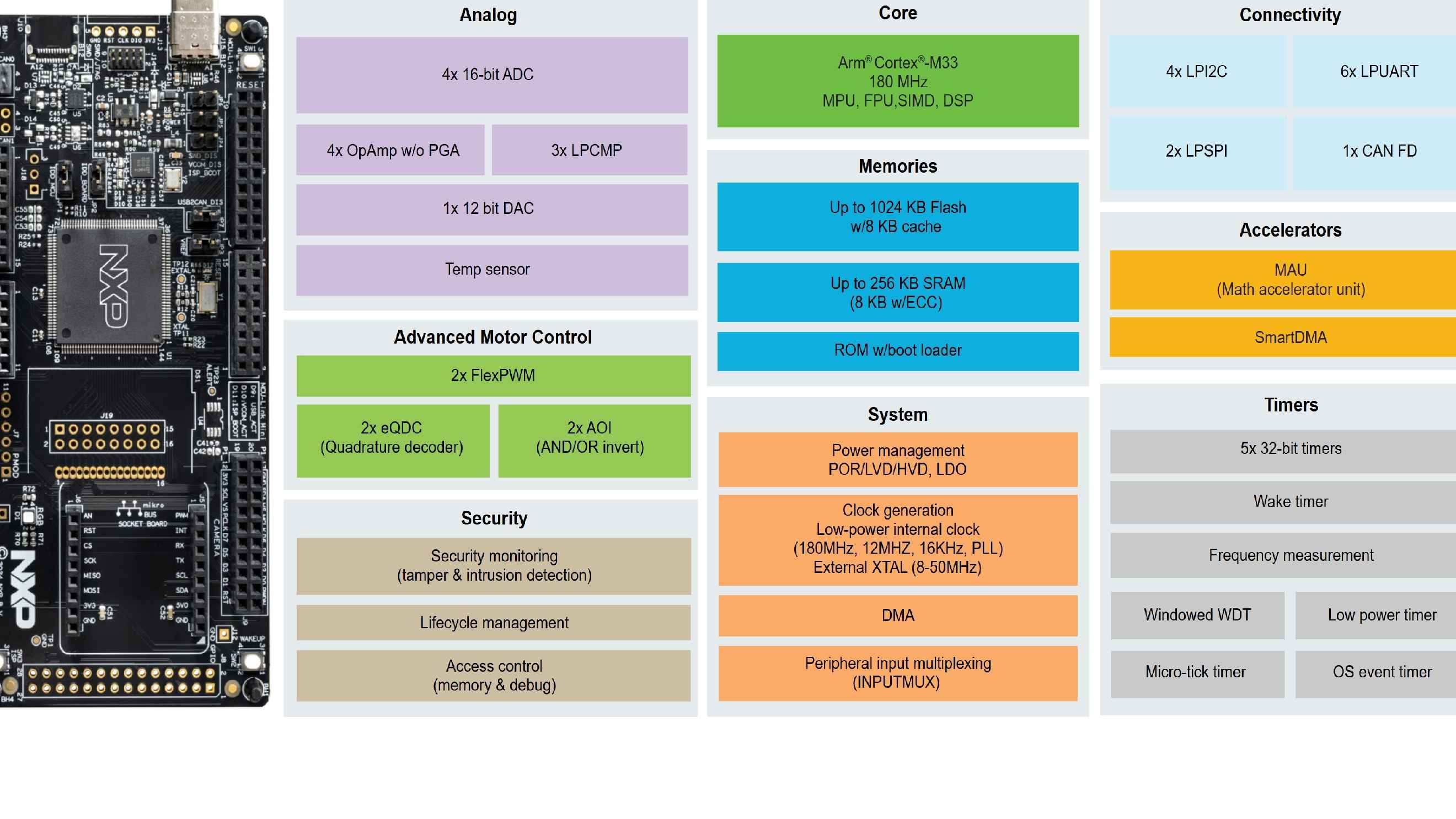通信接口 | LPUART、LPI2C、LPSPI、CAN FD |