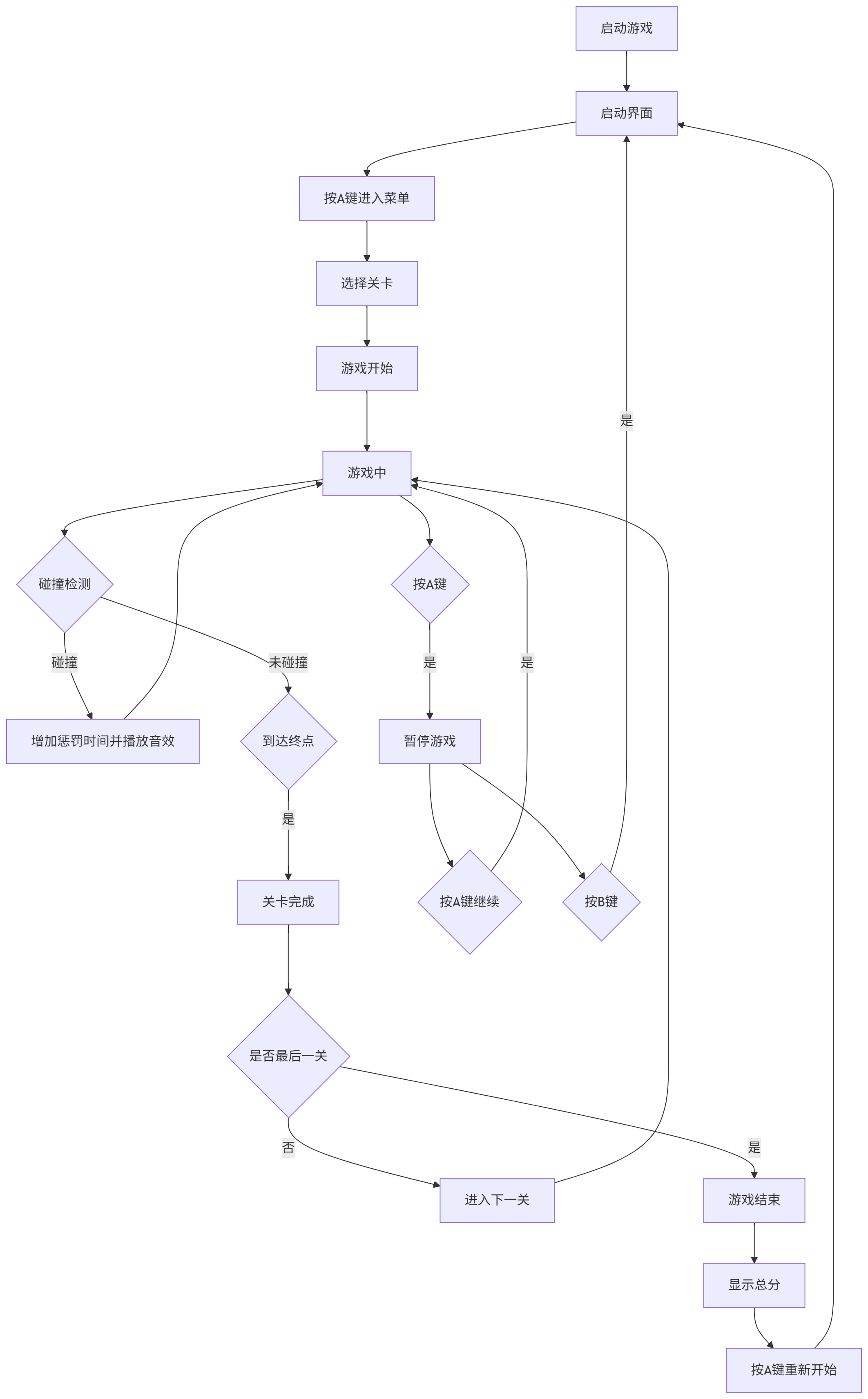 6. 得分计算逻辑:根据完成时间和碰撞惩罚计算关卡得分,并累加总分
