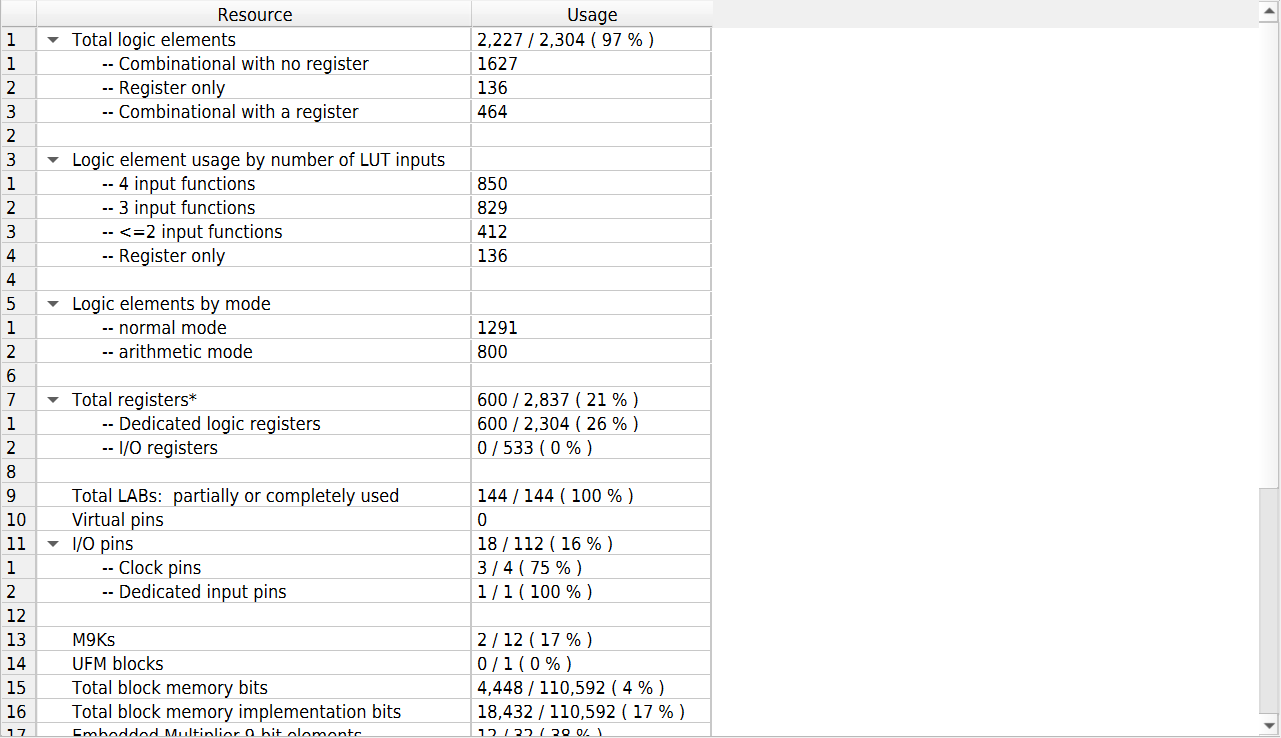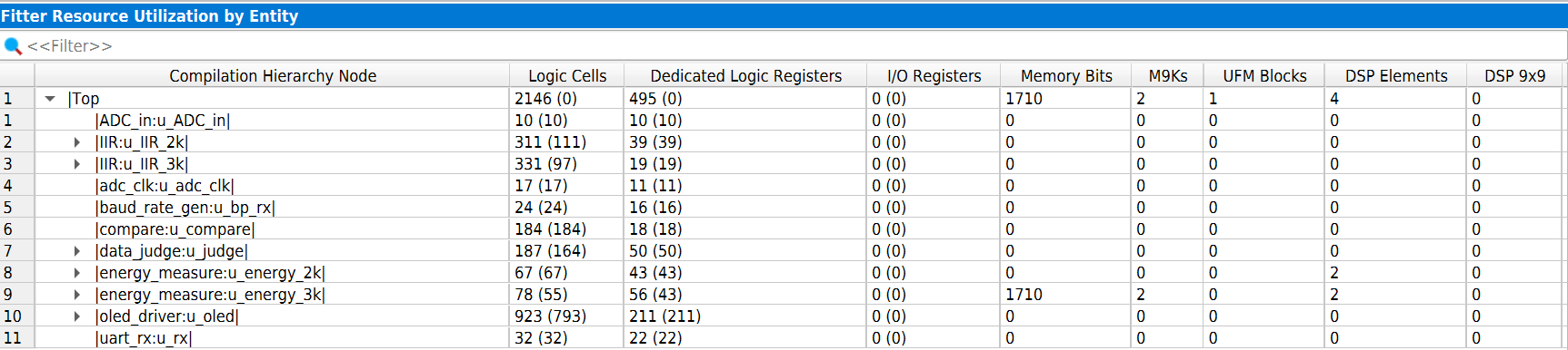 3. FPGA占用报告
