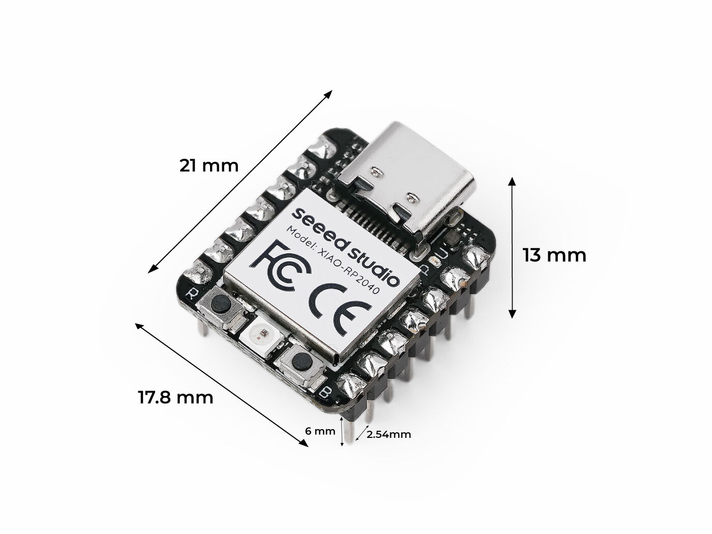 Launched in 2021, XIAO RP2040 with the classic XIAO compact design of 21 x 17.8mm. Its native compatibility with the comprehensive XIAO Add-on ecosystem - from expansion boards, sensors and displays to connectivity modules and actuators (Grove Expansion, CAN-Bus, LoRa module, LED Matrix, Vision AI Sensor, Round Display, L76K GSP module, 2-Mic Array, ePaper Displays, mmWave sensor, AC relay, Bus Servo Driver and many more) - makes it versatile for any project, no matter how simple or complex.