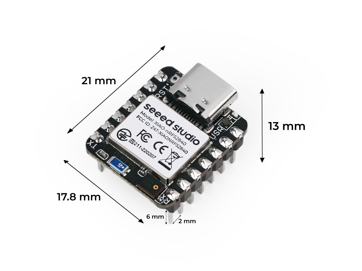 - Thumb-sized Design: 21 x 17.5mm, Seeed Studio XIAO series classic form-factor, suitable for wearable devices