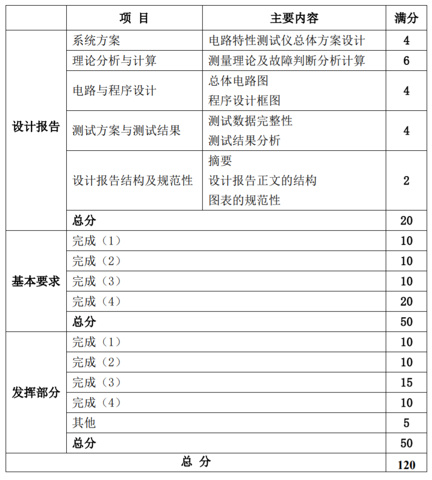 (2) 测试发挥部分(1)~(4)的过程中,电路特性测试仪能全程自动完成,中途不得人工介入设置测试仪。