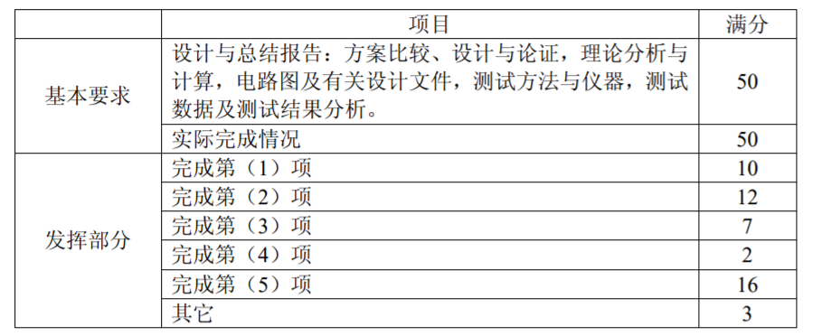 2、发挥部分第(4)项的测试条件为:输入交流短路,增益为 58dB。