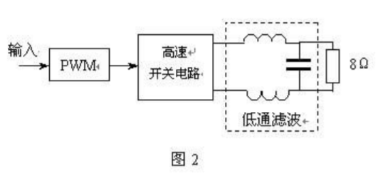 1.采用开关方式实现低频功率放大(即 D 类放大)是提高效率的主要途径之一, D 类放大原理框图如图 2。本设计中如果采用 D 类放大方式,不允许使用 D 类功率放大集成电路。