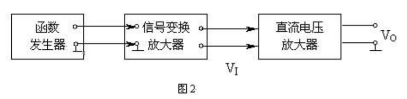 (3) 设计并制作一个信号变换放大器,参见图 2。将函数发生器单端输出的正弦电压信号不失真地转换为双端输出信号,用作测量直流电压放大器频率特性的输入信号。