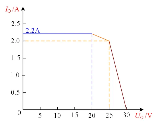 UI = 40V 条件下,通过直流电子负载改变输出电流 IO,使模拟器输出状态(UO,IO)按图 2 所示输出特性曲线变化,模拟器输出从某一状态变为新状态并达到稳定所需调整时间不大于 2s,且稳态控制精度满足以下要求:(50分)