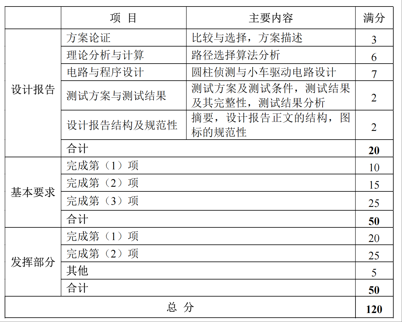 (2)所有传感器及控制电路均安装在小车上,小车尺寸在任何状态均必须满足(含所有传感器和控制电路):长≤35cm、宽≤25cm、高≤35cm。测试中小车与外部不得有任何通信交互。